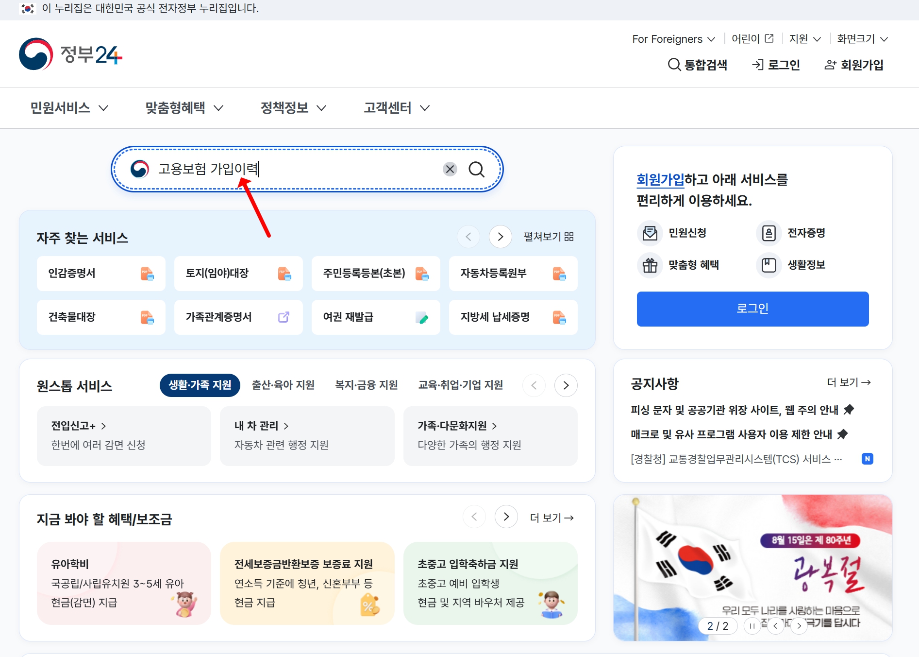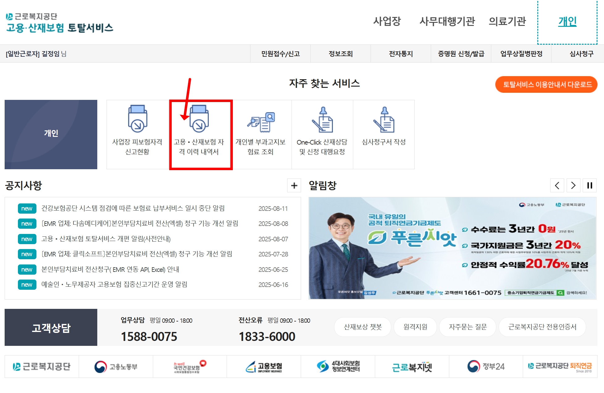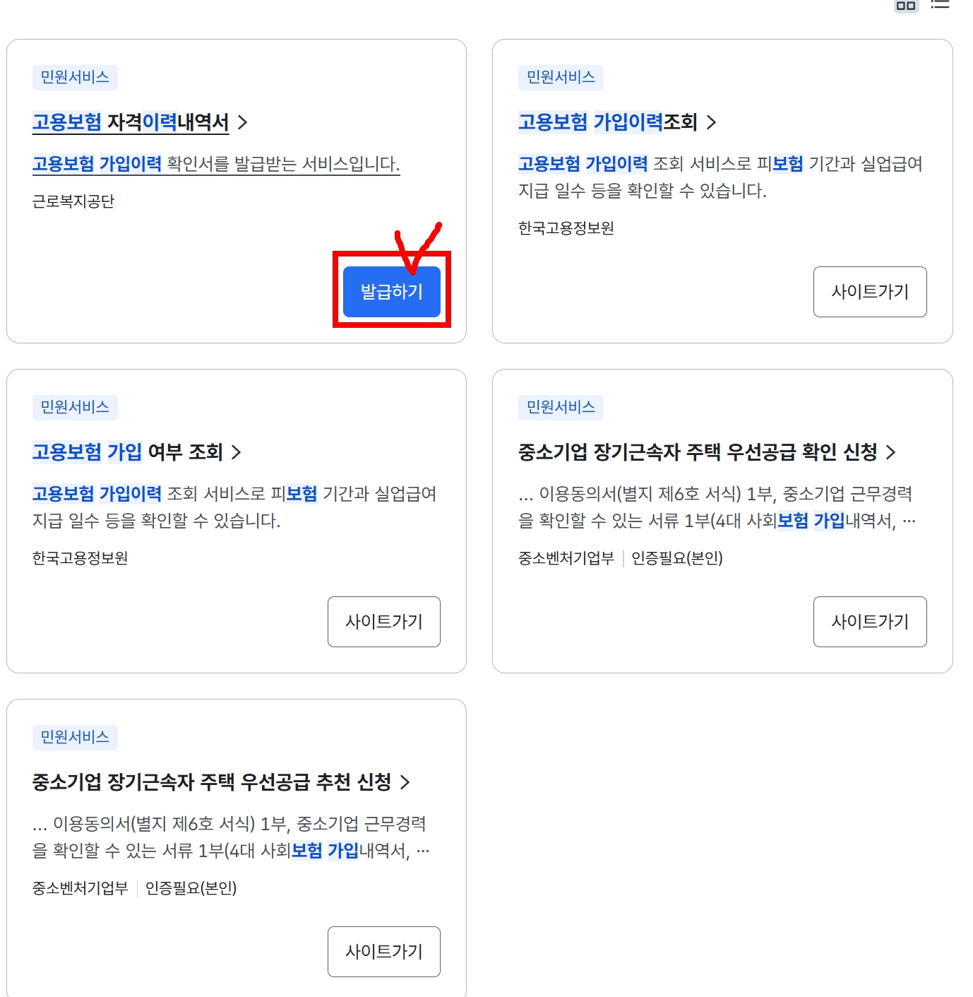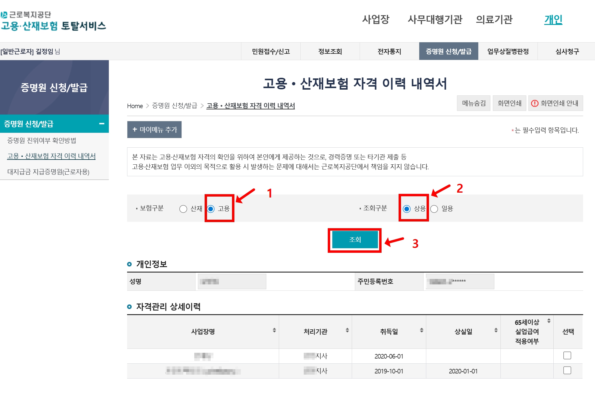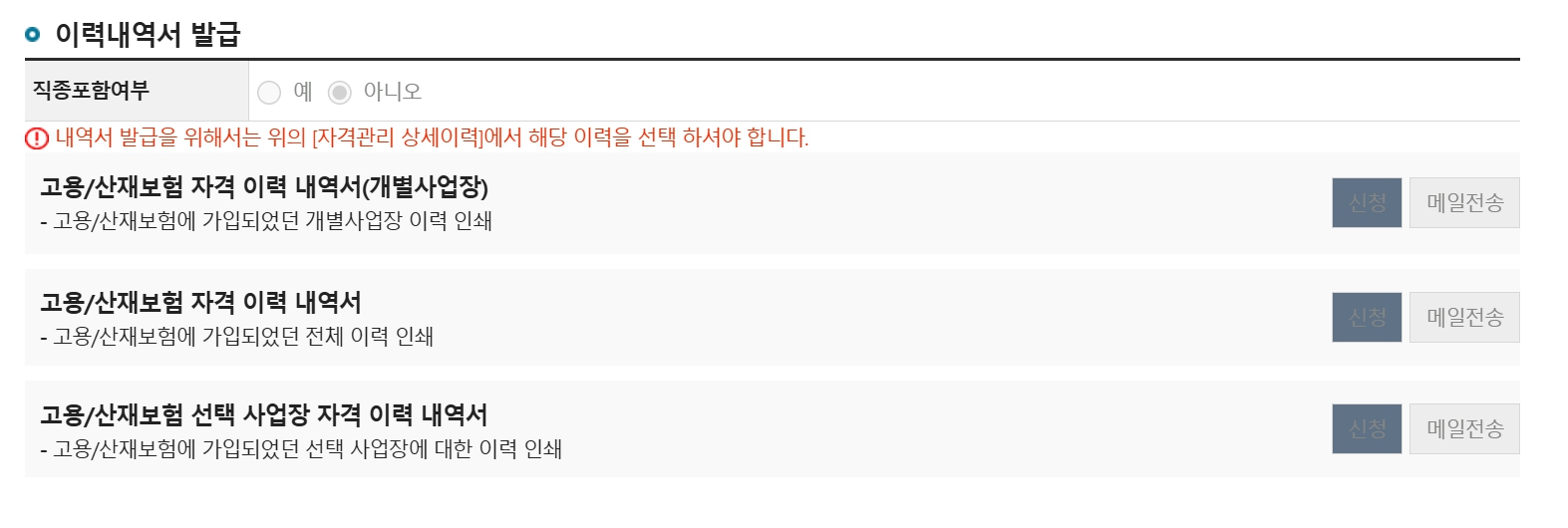 고용보험 가입 여부 및 기간 확인